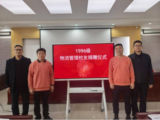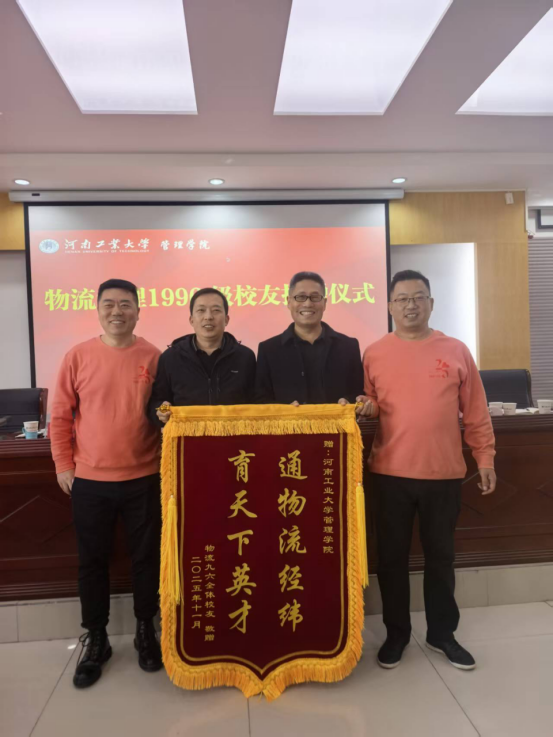 物流管理1996级校友赠送“通物流经纬,育天下英才”锦旗