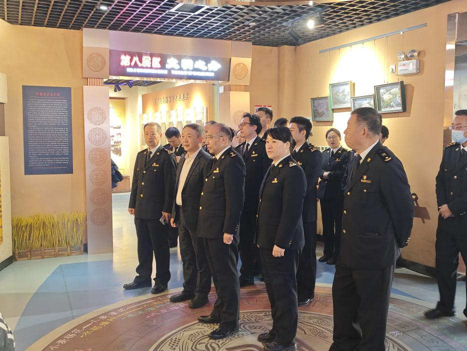 在粮博馆讲解员的引导下,沈磊、赵宁、金星一行沿着中国粮食发展的历史脉络,先后参观了中国粮食博物馆各个展区,详细了解了粮食起源与驯化、粮食生产与加工、粮食储备与流通、粮食科技与创新等方面的丰富内容。