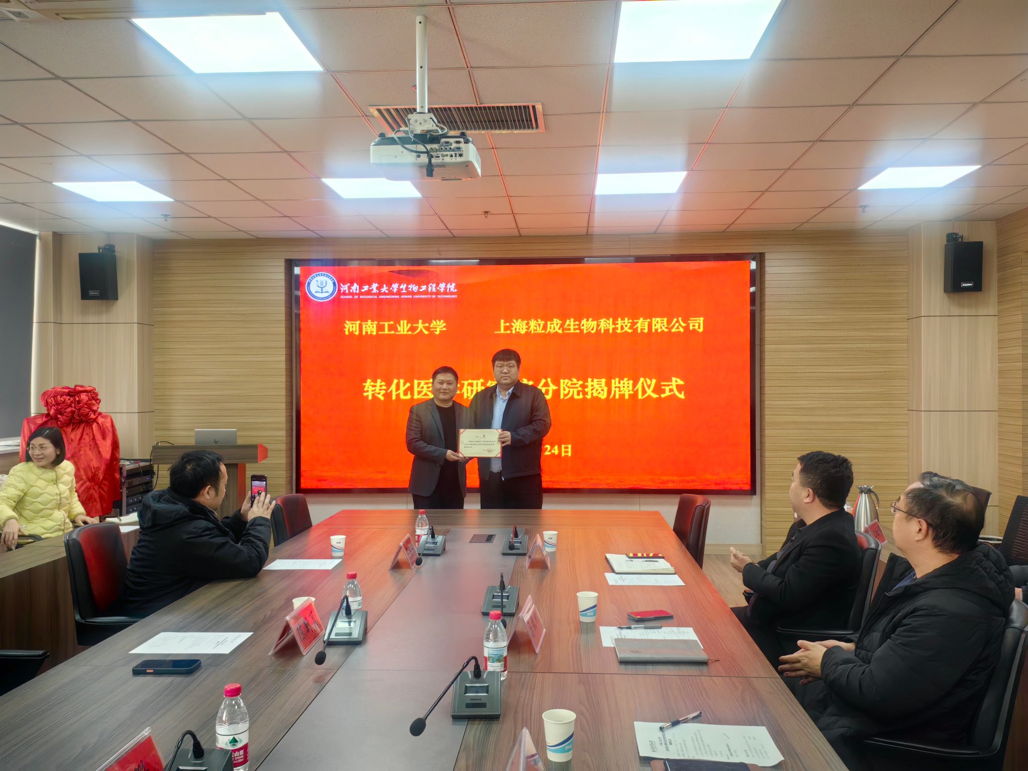 为加强校企合作,支持母校专业发展,上海粒成生物科技有限公司在生物工程学院设立“上海粒成生物科技有限公司转化医学研究院分院”。12月24日下午,双方在惟德楼1313会议室举行“转化医学研究院分院”揭牌仪式。生物工程专业08级校友、上海粒成生物科技有限公司董事长陈新页、生物工程专业09校友毕振原、校友与基金办公室主任马武刚、生物工程学院院长胡元森以及学院师生代表共同参加揭牌仪式。会议由生物工程学院副院长梁赢主持。