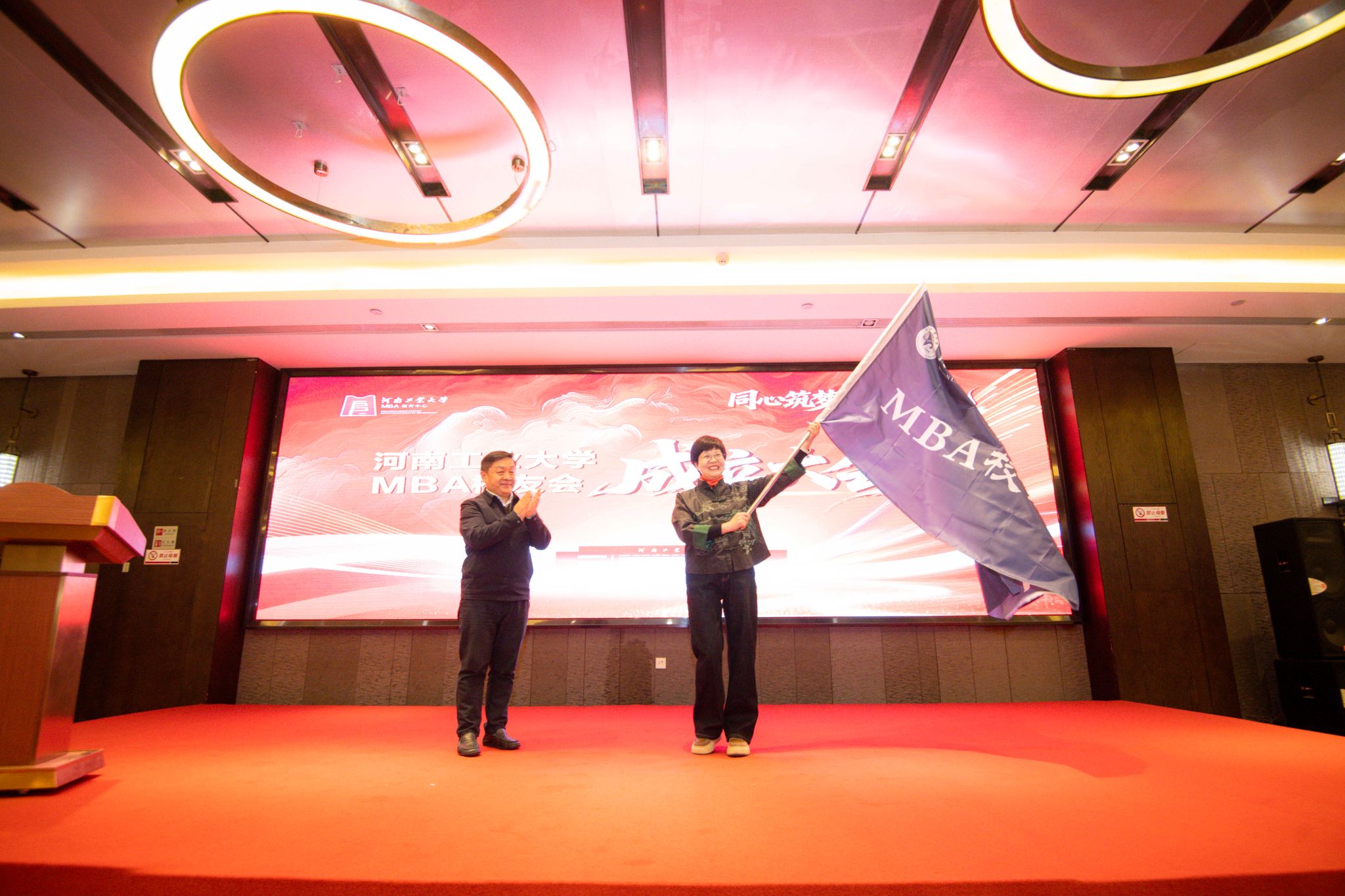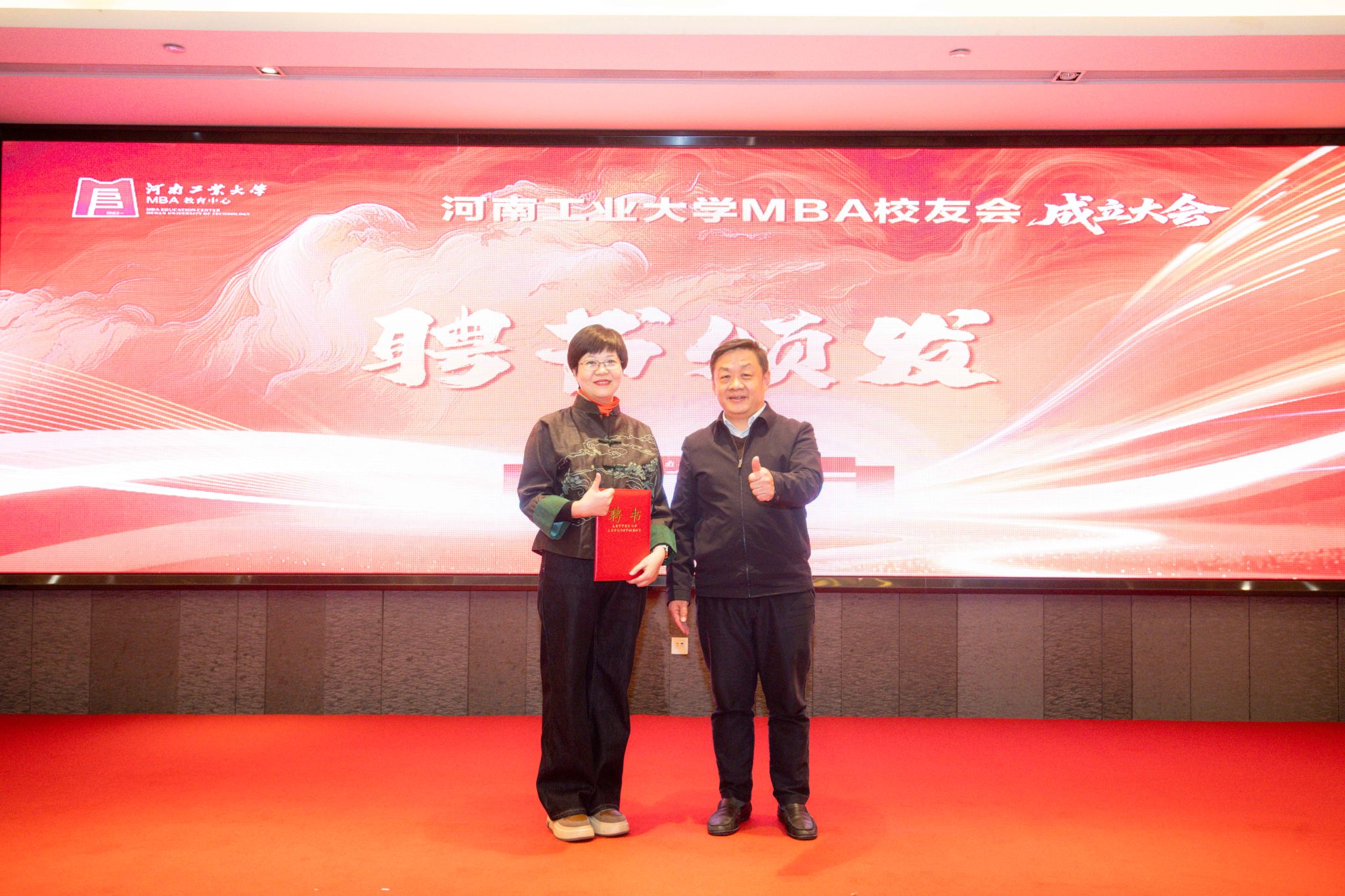 1月31日,河南工业大学MBA校友会成立大会在郑州顺利举行。校党委办公室主任、校长办公室主任、校友总会会长刘红军,校友与基金工作办公室主任马武刚,管理学院党委书记李国仓、院长李凤廷,校友办、管理学院相关工作人员及MBA校友代表一百余人参加成立大会。会议由MBA2017级校友李超杰、2024级校友王泽主持。