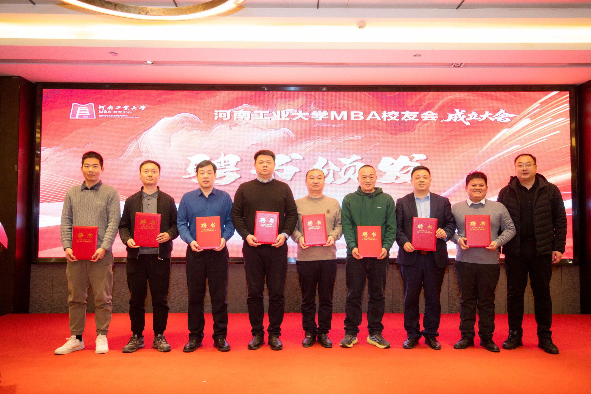 大会最后,全体参会嘉宾、校友代表及工作人员合影留念,定格下这一意义非凡的时刻。此次河南工业大学MBA校友会成立大会的顺利举行,不仅为广大MBA校友搭建了交流合作的新平台,更凝聚了校友力量、凝聚了发展共识,为推动学校MBA教育事业持续发展、助力母校“双一流”创建注入了新的动力。