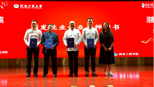 最后,院党委副书记张东霞为王伟、李留纪、王建勋、任学良、刘晓东等五位校友颁发就业创业导师聘书。